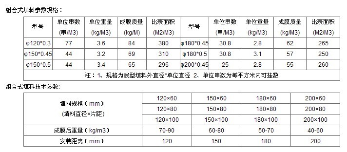 組合填料參數(shù)規(guī)格:單元直徑Φ150mm,間距有80mm、100mm兩種規(guī)格。中心繩有塑料繩及纖維繩兩種。組合填料訂貨須知: 訂貨請明確所需組合填料的長度、立方數(shù)、間距、參數(shù)規(guī)格等